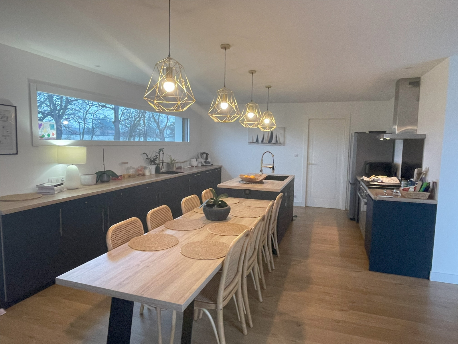 - Pièces : 5 chambres (ou 4 chambres + bureau), 2 salles de bains, 1 grande cuisine équipée sur mesure