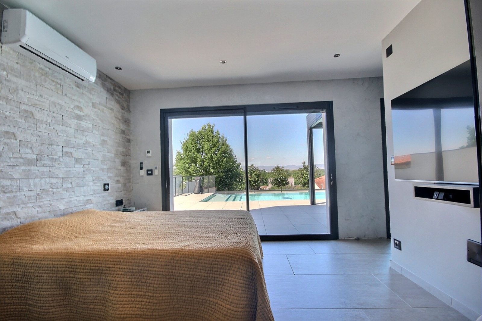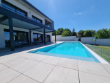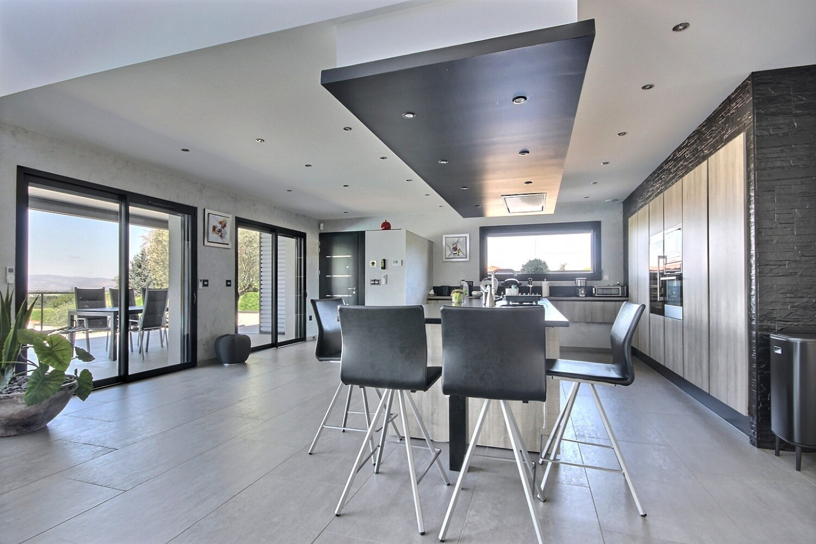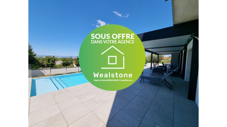 SOUS OFFRE - VILLA HAUT DE GAMME AVEC VUE - CONTEMPORAINE - SPACIEUSE - LUMINEUSE - ECONOME - NOMBREUX EQUIPEMENTS DE QUALITÉ. Située au calme à St Bonnet les Oules (42330) Loire. Elle comprend 3 chambres, dont 2 à l'étage et de plain-pied une luxueuse suite parentale avec son dressing et sa salle de bains ; De plain-pied également la pièce de vie lumineuse de 100 m² avec cuisine équipée haut de gamme, l'ensemble accessible par des baies vitrées sur l'immense terrasse et la piscine offrant une belle vue dégagée. A l'étage on a également une grande salle de sport (pouvant être aménagée en 4° chambre) reliant les chambres de l'étage puis la salle d'eau et le wc ; par une passerelle en verre. Sans oublier la buanderie et un garage double. Le tout sur un terrain clos et aménagé de 1 200 m². En termes d’équipements : chauffage pompe à chaleur par le sol + climatisation, wc indépendant à chaque niveau, piscine à débordement avec volet immergé, 3 pergolas bioclimatiques, cabane de jardin Biohort, arrosage automatique, domotique volets roulants, portail, chauffage), .... BIEN RARE SUR LE SECTEUR - VENDUE PAR Franck MARTELLINO 06.07.86.88.06 ou l’agence Wealstone 04.77.54.09.02