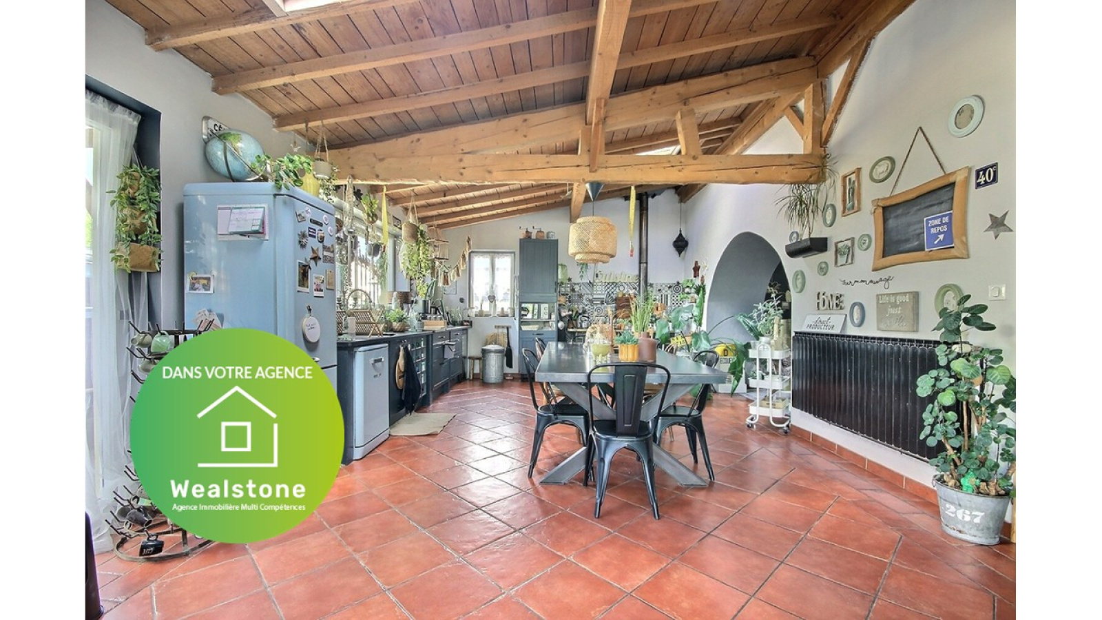 VUE CHAMPETRE ET LE CHARME DE L'ANCIEN POUR CETTE MAISON SPACIEUSE ET ATYPIQUE - Idéale pour une famille avec ses 4 chambres et ses nombreux équipements.Située à St Romain le Puy (42610) Loire. De plain-pied on dispose d'un espace de 85 m² séjour avec cuisine, on a également une salle d'eau et un espace buanderie. A l'étage : mezzanine qui dessert 4 chambres. Sans oublier la chaufferie et un garage/atelier de 58 m². Le tout sur un terrain clos et aménagé de 1 178 m². En termes d’équipements : chauffage par géothermie, poele bois suspendu, cuisine équipée, wc à chaque niveau, piscine 5x4m, chalet bois, poulailler, bassin d'agrément avec poissons et nénuphars qu'on peut traverser par une passerelle, grande terrasse couverte, espace chat aménagé,... Cette maison est en copropriété et mitoyenne avec un petit appartement qui est vide et disponible. BIEN A DECOUVRIR - Renseignements et visite, contacter Franck MARTELLINO 06.07.86.88.06 ou l’agence Wealstone 04.77.54.09.02